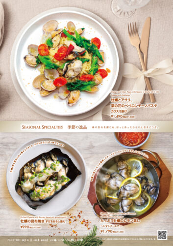 期間限定の冬の牡蠣フェアメニューのお知らせです。