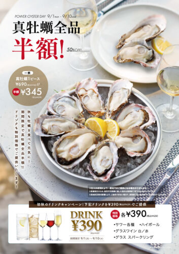 また、限定ドリンク特別価格にてご提供!牡蠣とお酒のマリアージュをお楽しみください。