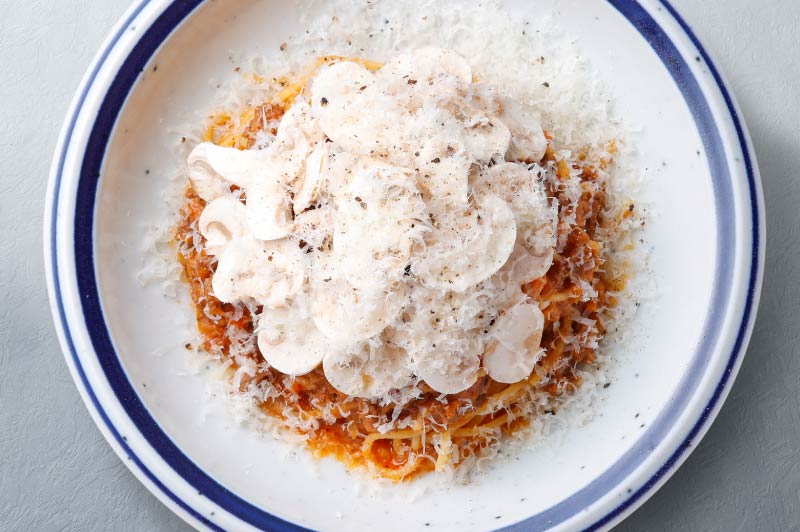 | 牡蠣とカニミソのトマトクリームパスタ |