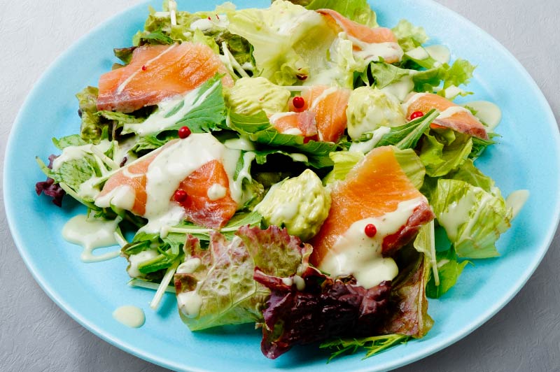 | スモークサーモンと彩り野菜のカルパッチョ |