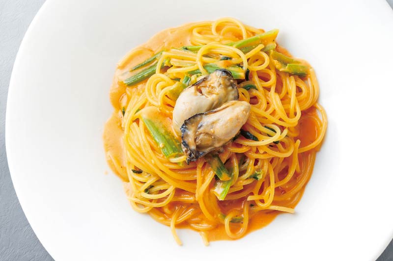 | 牡蠣とほうれん草のオマールクリームソースパスタ |