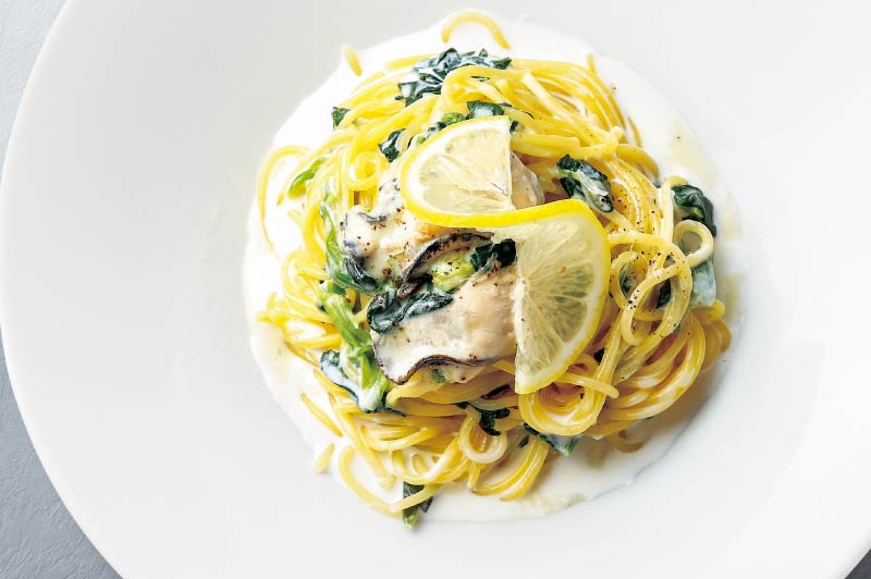 | 牡蠣とホウレン草のレモンクリームパスタ |